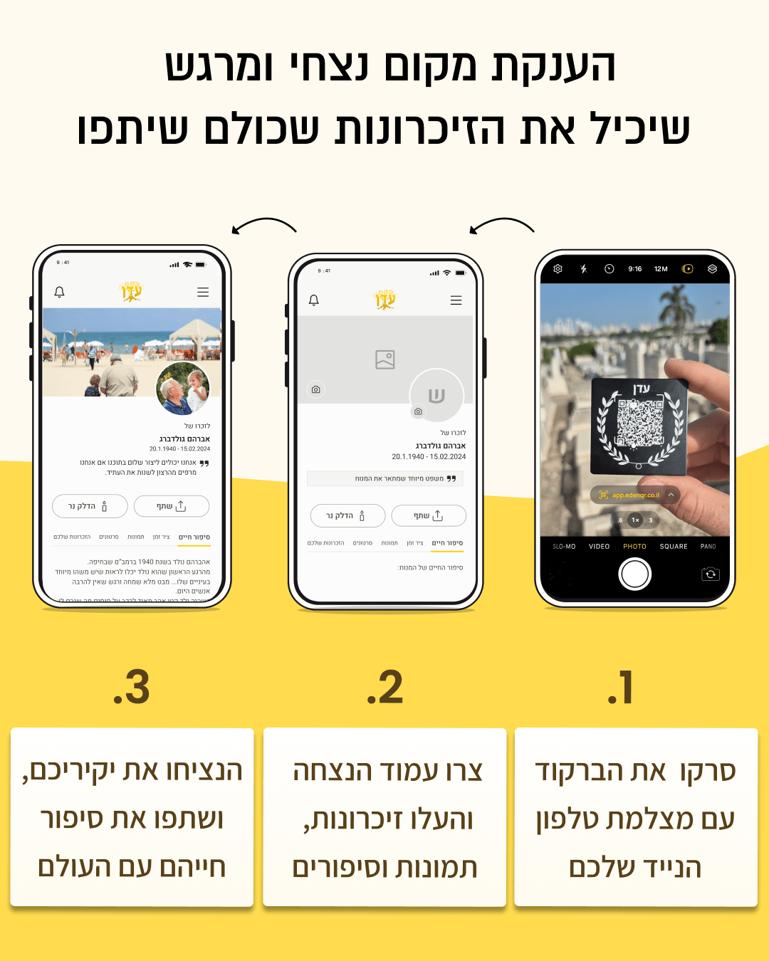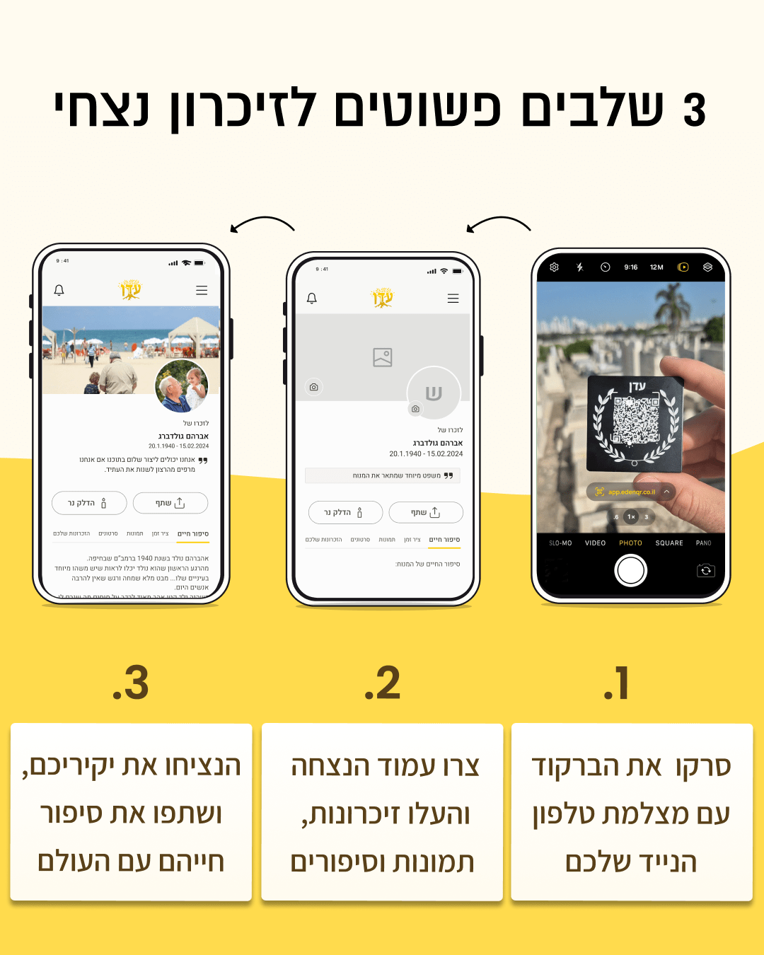 הנצחה ציבורית 🌍: כל מי שיסרוק את הלוחית יוכל להיכנס ולהתרגש מהסיפור של יקירך.