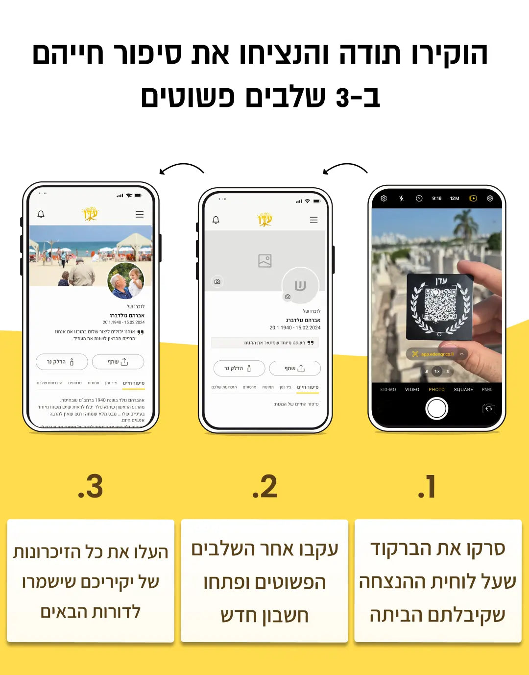כל מי שיגיע לבית העלמין ויסרוק את הלוחית יוכל לראות את כל הזיכרונות, הסיפורים והתמונות במקום אחד.