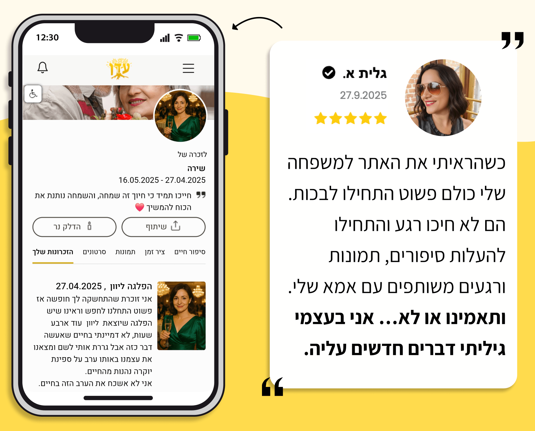 ״המתנה הכי מרגשת שיכולתי לקנות לאמא שלי! היום כל מי שמתגעגע אליה פשוט נכנס לאתר, קורא ומתרגש.״